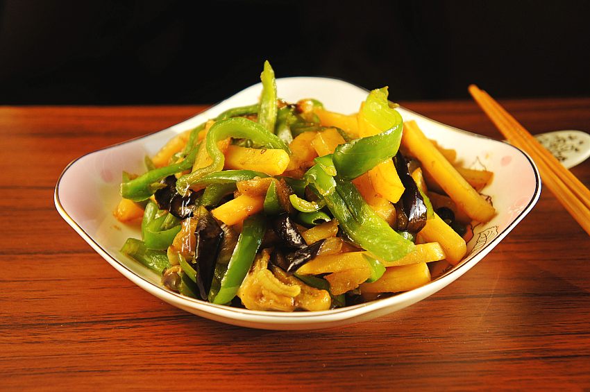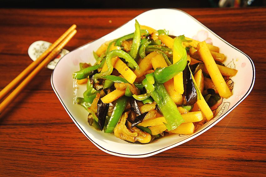 1、简单又快手的家常菜,青椒、茄子和土豆切条口感更好,和丝比起来就是不一样,更具有食材的本味。切好的土豆条最好入冷水浸泡10分钟左右,泡出淀粉再炒口感好,淀粉还可以用来做芡汁,也不浪费。