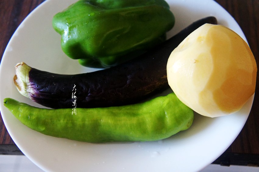 做法及步骤:1、青椒、茄子、辣椒洗净,土豆去皮洗净备用。