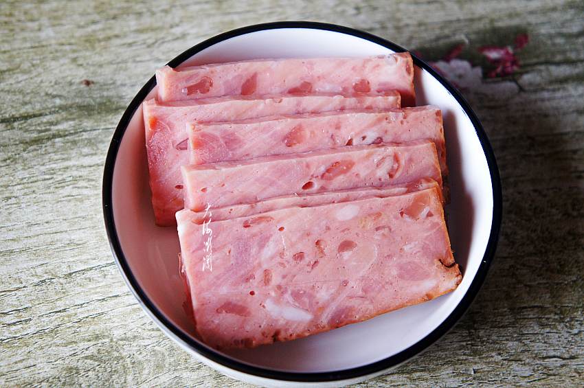 6、火腿,也是家人爱吃的一道肉菜,搭配火锅和直接吃口感的确不一样,口感顺滑,香而不腻,味道更加丰富了,所以我家常常把它作为火锅的配菜,喜欢的朋友可以试试,非常好吃。