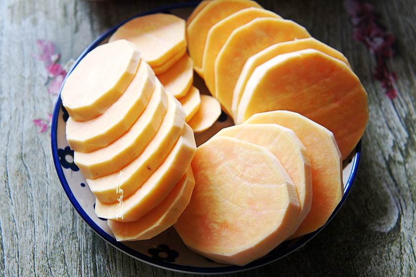 4、红薯,这是我家人最喜欢的配菜,每次吃火锅必备,即是主食也是菜,口感甜糯,蘸芝麻酱吃特别香。
