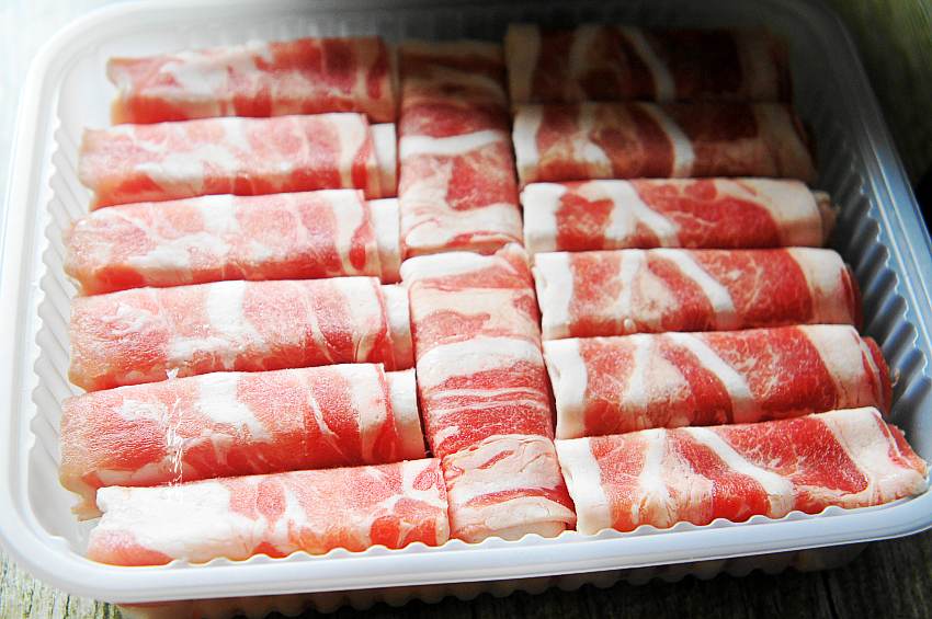 3、羔羊肉卷,买两斤,三人只吃掉一斤,还吃得蛮撑的。涮火锅就是这样,品种多,一样吃一点就吃饱了,最后的手擀面都没煮,因为锅底升上来,吃掉所有每人都各尽所能了,再煮面的确吃不下,不能浪费。
