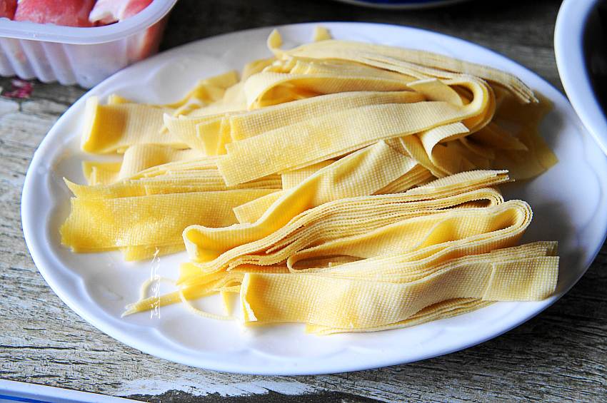 8、干豆腐丝,涮火锅非他莫属,耐煮又入味,而且这干豆腐是从外县买来的,特别薄,口感劲道,充满豆香,非常好吃,全家人都爱吃,每次去外地都会带一些回来,冻在冰箱里留着慢慢吃,卷菜、炒、炖都好吃。