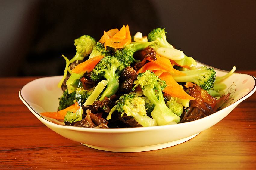 【素炒家常菜】所需食材:黑木耳1把;西兰花半个;胡萝卜1根;油适量;盐适量;五香粉适量;大蒜适量;蚝油少许。