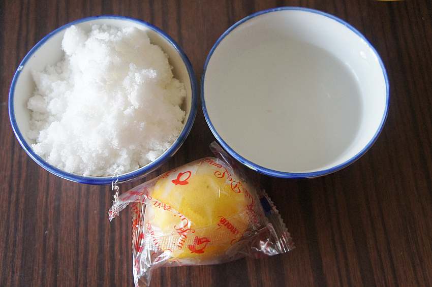 做法及步骤:1、准备食材,白糖200g;纯净水110g,柠檬1个,柠檬需要榨汁,榨汁后滤掉渣子备用。