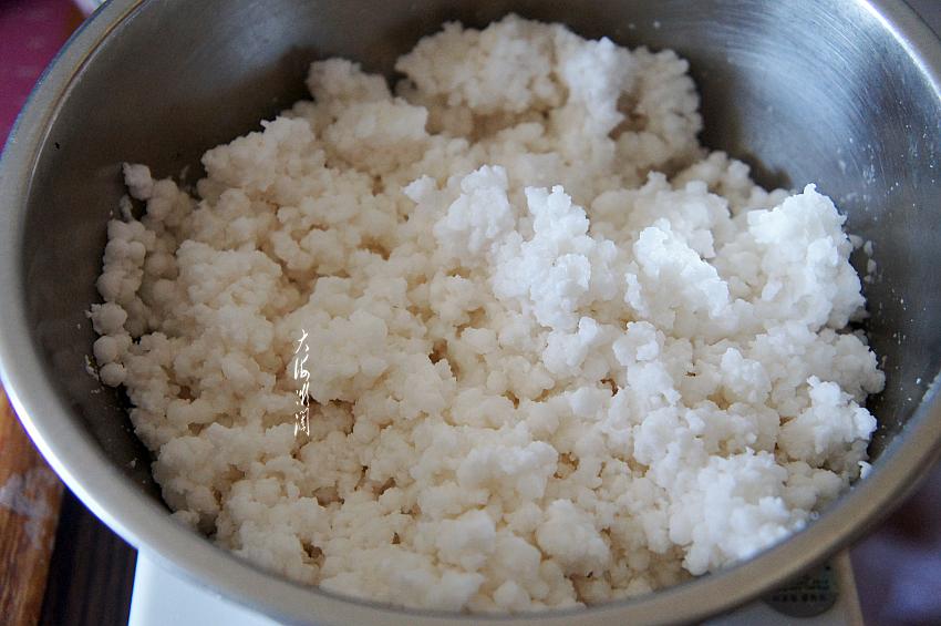 4、加入适量的玉米淀粉,戴上一次性手套,揉成面团。玉米淀粉的多少取决于浸泡西米的用水量,所以不要加太多的水。