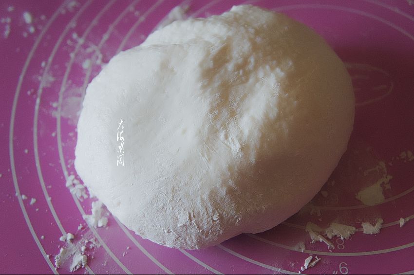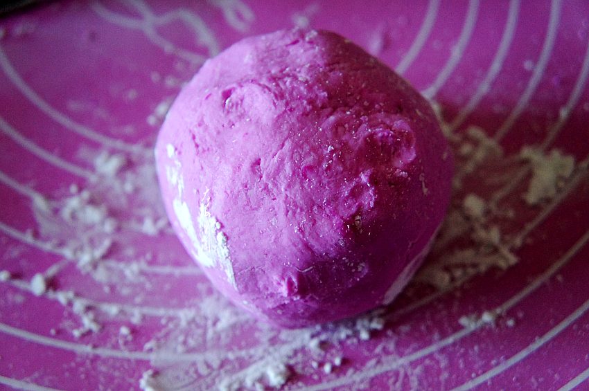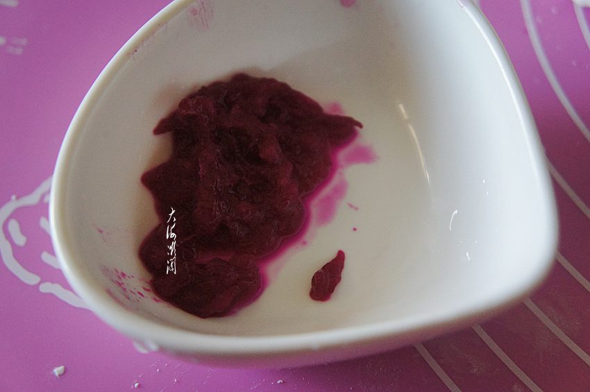 6、取下的火龙果汁,用来直接揉进面团,紫色的面团很靓丽。
