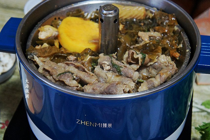 10、这一锅是小朋友特别爱吃的羊肉火锅,还有肉丸和大家喜欢的红薯片。