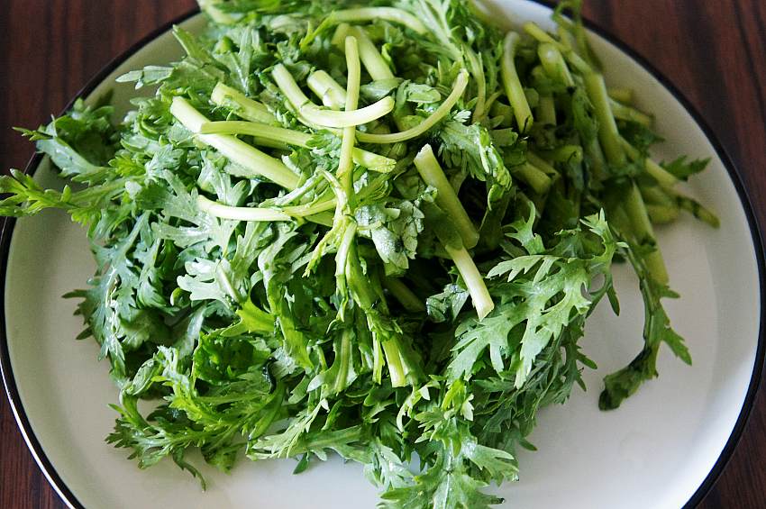 2、清洗干净的茼蒿切段备用。