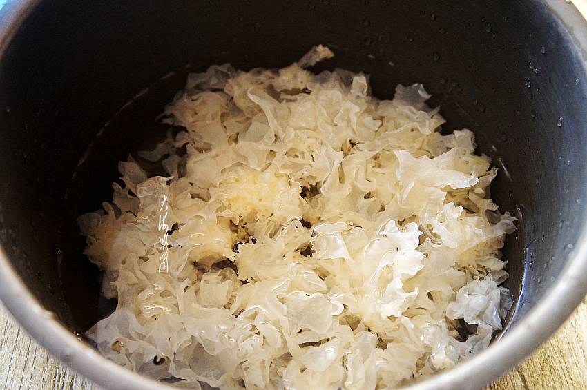 做法及步骤:1、银耳提前用温水泡发,摘掉根部黄色部分,反复清洗干净。