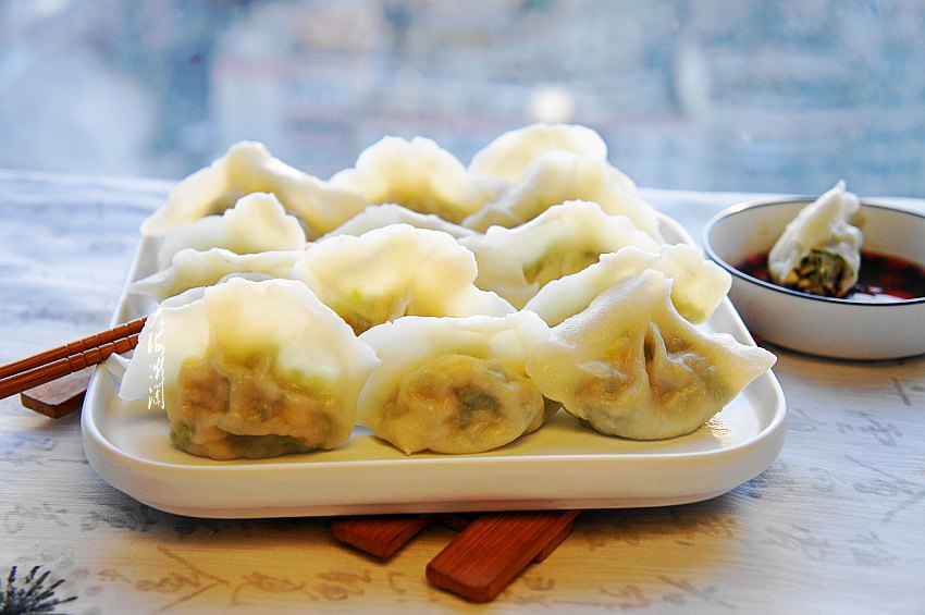 素馅大水饺,全家人齐动手,包的包煮的煮,瞬间结束早餐