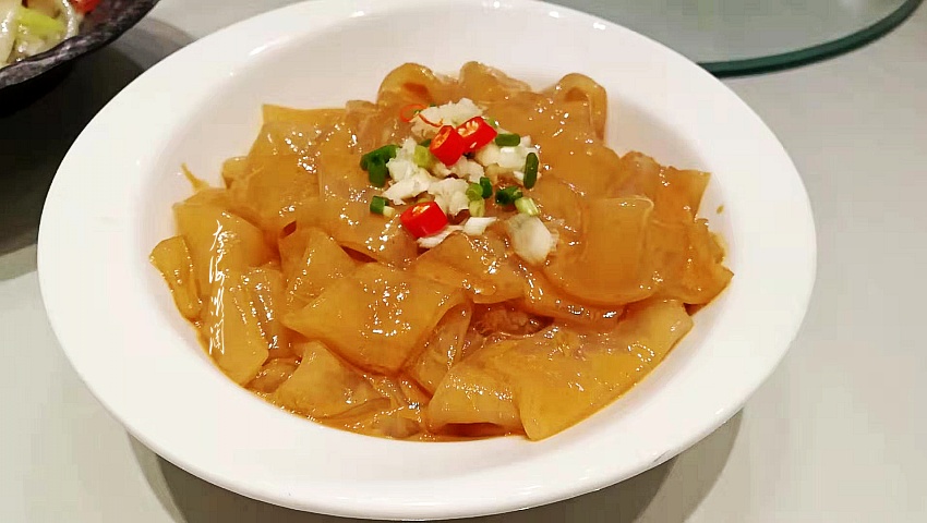 【麻酱拉皮】东北大拉皮还是挺有名的,老人孩子都爱吃,口感筋道,芝麻香味浓郁,实际做法也很简单,买回来拉皮用麻酱、蒜碎、香菜碎一拌就OK了。喜欢自己动手的,拉皮也能自己做,很简单的一道菜,也是东北人大爱的一道菜。
