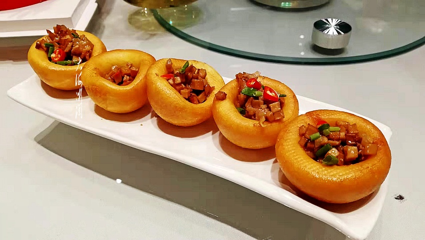 【杂粮包】这道菜在当地很流行,各家饭店几乎都有,杂粮蒸的小窝头,包上肉菜丁,既是主食也是菜,好吃不贵,感觉还挺有营养的。