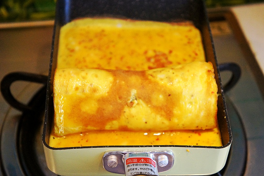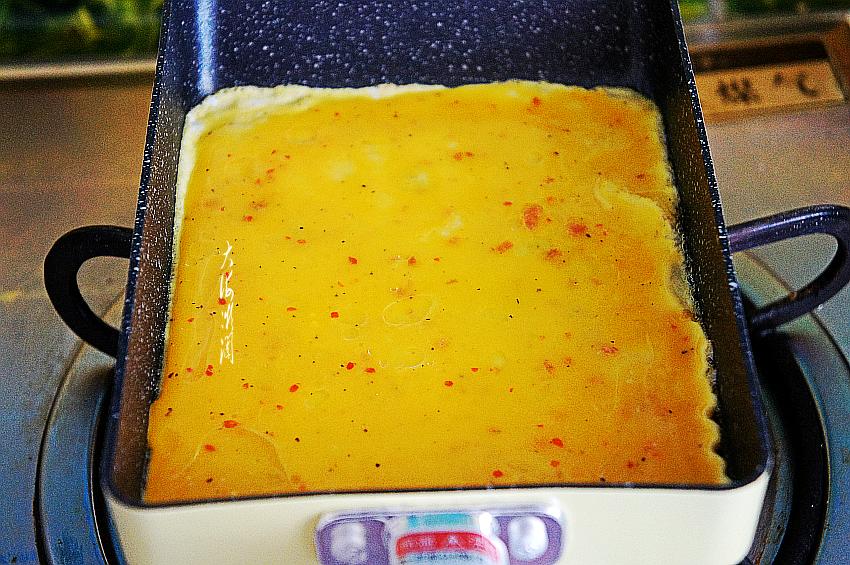3、煎锅没有特别要求,玉子烧煎锅好一些,没有平底锅一样好用,没有平底锅,大勺也可以,注意摊平摊匀就好。