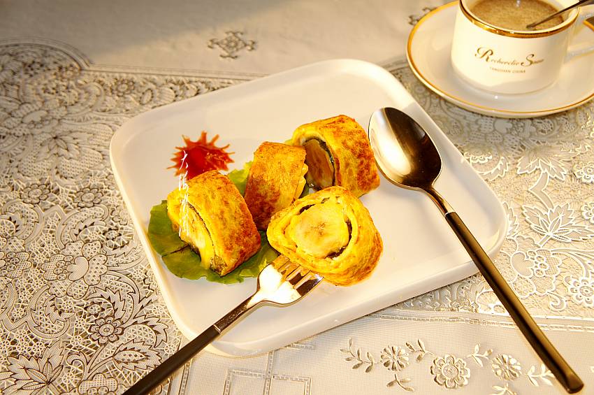 玉子烧是什么呢,说白了就是鸡蛋卷,是一种日本料理,由鸡蛋,牛奶,盐,味淋,还有日本的柴鱼酱油组成,在日料中吃过玉子烧的朋友都知道,这道小食价格不菲。自己在家做,物美价廉,食材也可以随意搭配,做自己喜欢的口味,孩子爱吃的就是最好的,不用在意细节。我今天就搭配了烤肠、香蕉和小朋友最爱吃的奶酪,卷上一根香蕉,早餐水果有了,还放上几片生菜叶解腻,这些食材卷在一起,有甜有咸,好吃不腻,重要的是营养价值非常高,鸡蛋能够提高身体的免疫力,对眼睛很有好处。而牛奶当中的蛋白质含量很高,奶酪则是含钙最高的奶制品,而且奶酪中的钙容易被人体吸收,吃含有奶酪的食物能大大增加牙齿表层的含钙量,从而起到抑制龋齿出现的作用。香蕉中大量的食物纤维,可以刺激胃肠快速工作,促进消化。而且香蕉可以帮助人体产生血清素,该物质能够使大脑神经系统活跃起来,防止神经疲劳,是清神醒脑的利器。