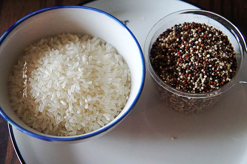 做法及步骤:1、准备食材:东北大米和三色藜麦。藜麦是最近很火的全营养食材,素食主义者的大爱,购买时注意要挑选品质好的藜麦才有营养。
