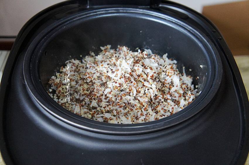2、大米和藜麦我是按照3:2的比例搭配的两种食材,其实没有固定比例,可以随自己的喜好配置。