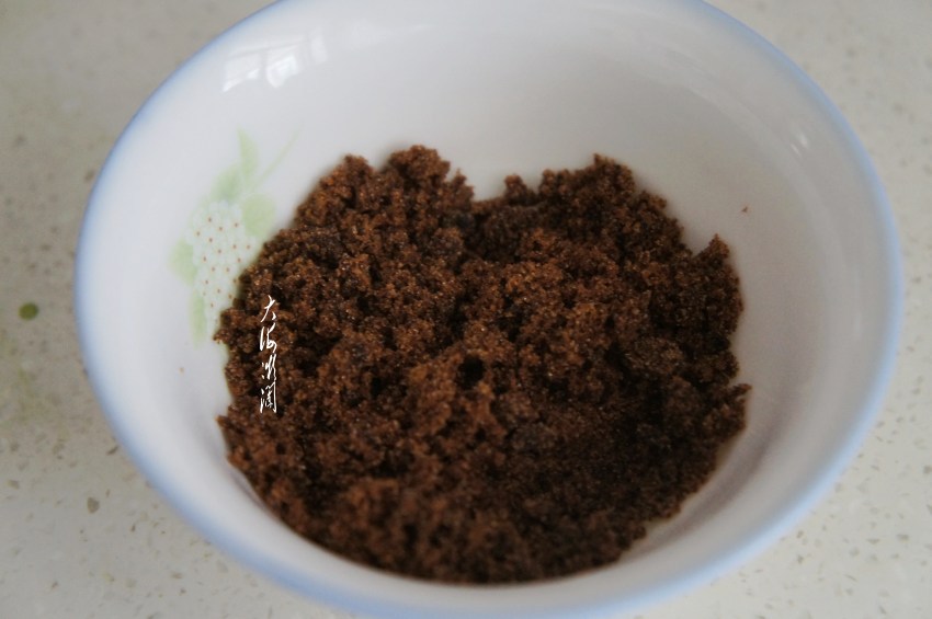 3、加入红糖拌匀,红糖比白糖更有营养。