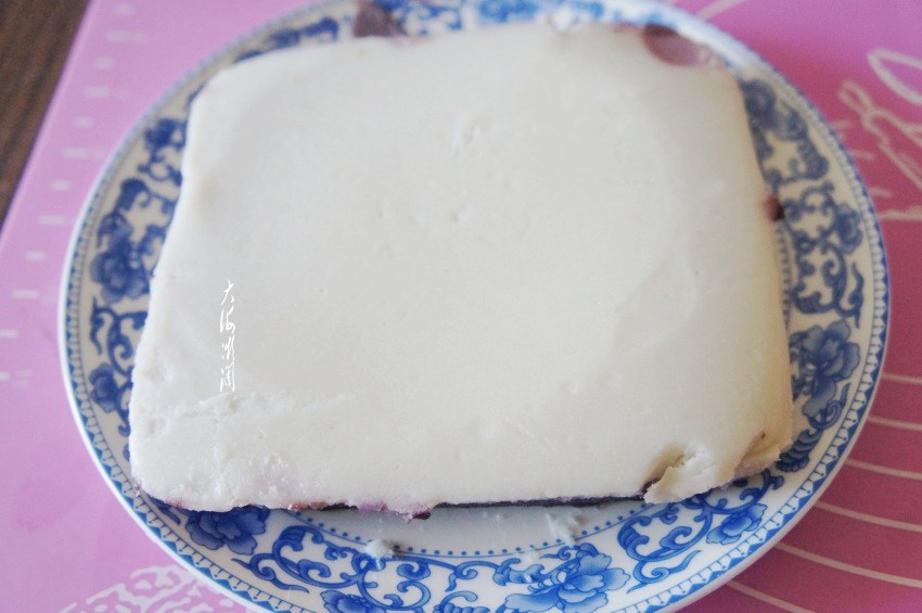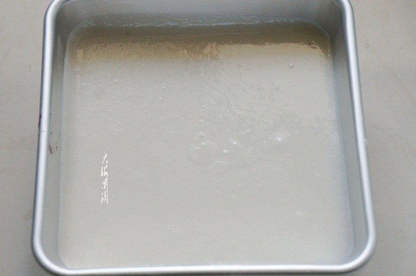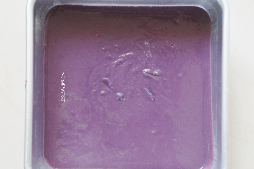 8、将紫薯泥倒入模具中,轻震几下,冷却后放入冰箱冷藏至凝固。