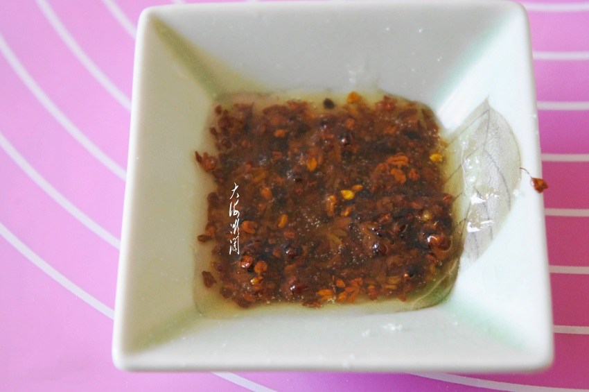 14、桂花糖加入适量的糖浆汁调制后洒在上边。