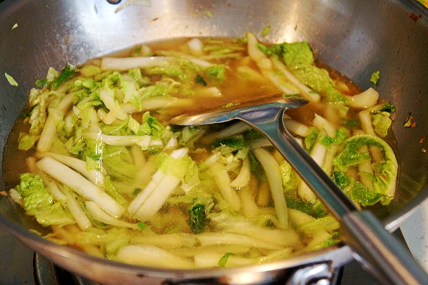 6、加入适量的水,白菜本身有水分,不宜加太多的水。
