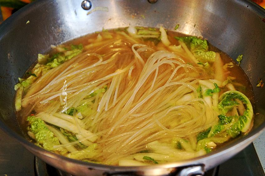 7、加入粉条,大火烧开,小火炖熟,加入盐、生抽、蘑菇粉调味。要留有一点点汤才好吃,泡饭也非常美味。