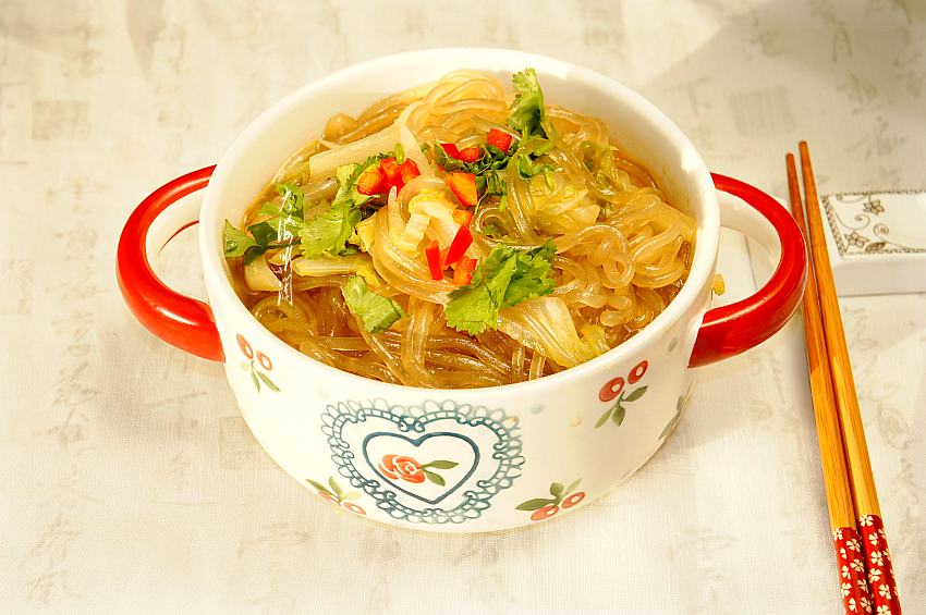 2、粉条最好提前浸泡至变软,炖煮都容易,而且和白菜还能炖在一起,否则粉条熟了白菜就炖过了。