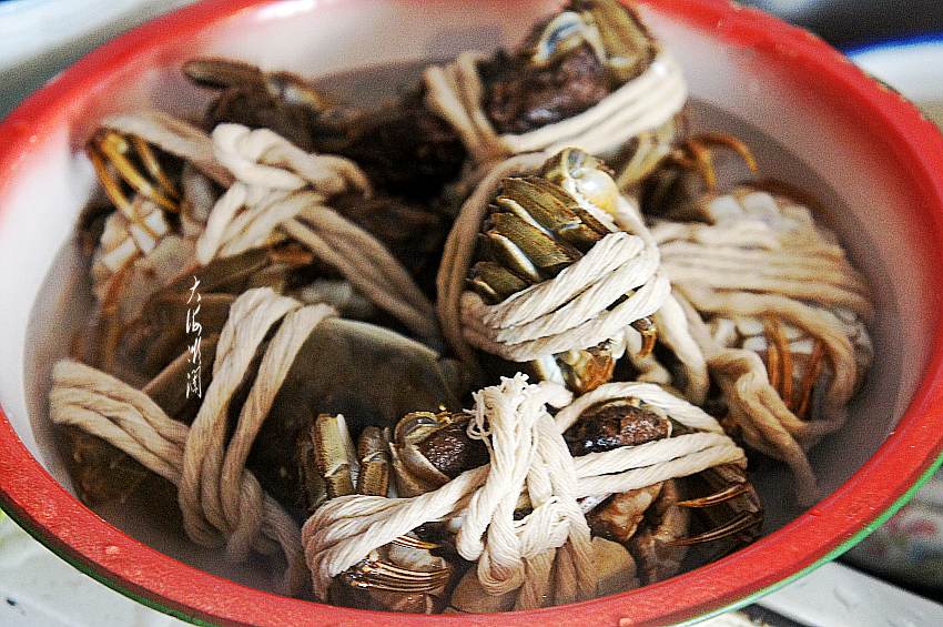 做法及步骤:1、刚刚到货的阳澄湖大闸蟹,个个都是活的,没敢解绑,解绑后张牙舞爪的再捆绑很难。