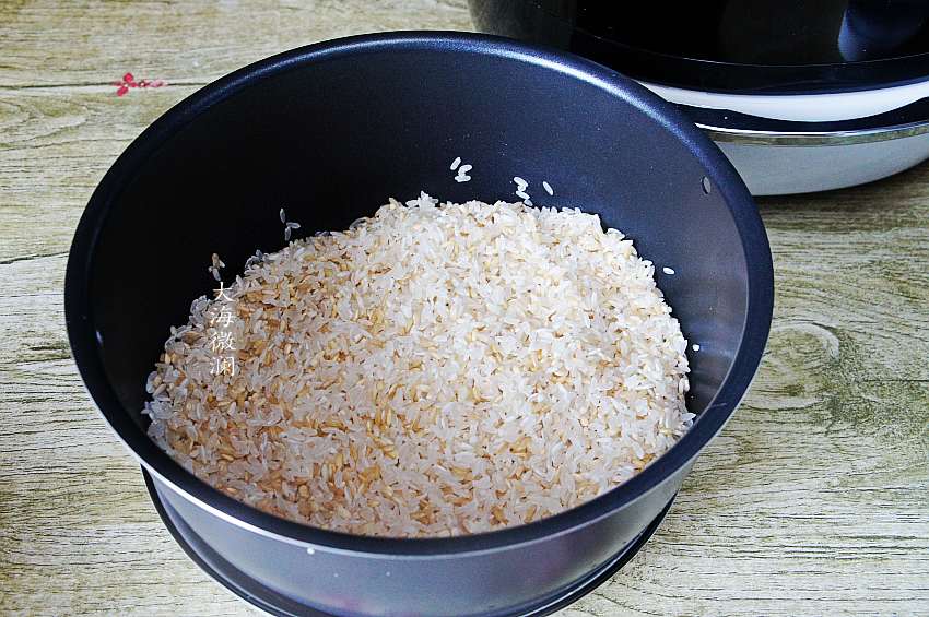 做法及步骤:1、准备食材,糙米是这样的,看上去磨得不细,吃起来口感还挺好。