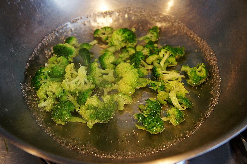 6、锅中加入适量的水,水开焯烫西兰花,捞出过冷水,控净水分备用。