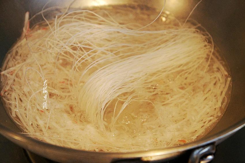 5、再次煮开下入粉丝,继续煮开,用筷子将粉丝轻轻划散,防止粘连。