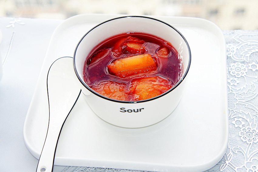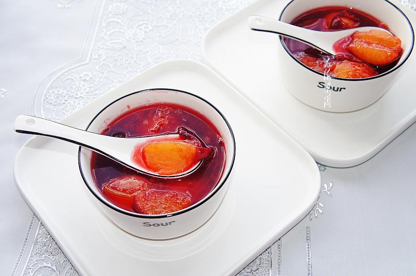 7、出锅。这颜色除了红糖的颜色还有李子皮的颜色,特别诱人,酸甜可口,好吃到流口水。