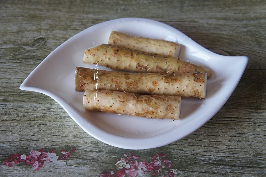 3、山药洗净切段儿,洗山药的时候皮肤敏感的朋友要注意,一定戴上手套,否则容易过敏皮肤发痒。