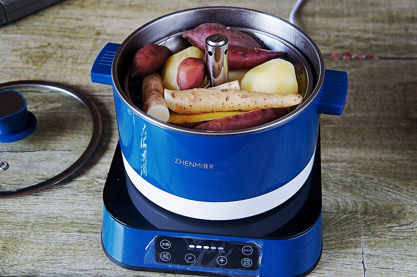 臻米电火锅又蒸一锅,这锅太方便了,满满一锅粗纤维,最适合晚餐,这可是闺蜜的晚餐食谱之一,不用减肥,人家就是苗条。这里边有红薯、土豆和山药,都是蔬菜中的佼佼者,天然的保健食品,不用细加工,就这么简简单单的蒸一锅,原汁原味,每天吃一餐,不但能被吸收,增加营养,还能帮助排除体内的垃圾和毒素,减轻肠道负担,保持一身轻松。最近我家红薯吃的特别多,网购两种红薯,今天吃的是其中之一,栗子味的红薯,个头小,吃起来有栗子的口感,家里人都爱吃,吃好了立马下单又买了一份,北方再过几天蔬菜水果类的食物都不能网购了,寄到家就冻坏啦,要抓紧时间抢购。还有一种是侄女前几天从大连给邮来的糖心蜜薯,甜的不要不要的,还没吃完,各有特色,都是吃了还想吃买了还想买的那种。山药买的是铁棍山药,土豆是哥哥家自己种的大土豆,可是绿色食物,无农药无化肥。晚餐这一锅,吃得五饱六饱的,不用担心,不长肉。
