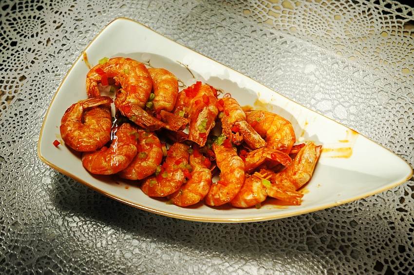 【蚝油大虾】炒菜的锅,不用刷,直接倒入收拾好的大虾翻炒,出锅前加点蚝油,分分钟就OK,出锅装盘再撒点葱花点缀下,可以和饭店大厨的菜媲美吧!肉质鲜嫩,味道可是超级鲜美,光盘的一道菜。