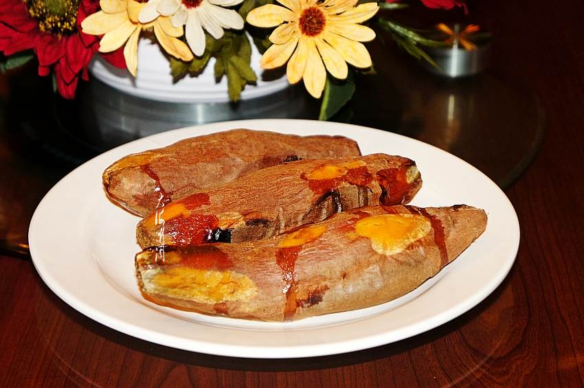 【烤地瓜】是菜也是饭还是小零食,我来的时候好朋友正再烤地瓜做零食,24分钟,这地瓜都烤出糖来了,看着就流口水呀,连皮都可以吃掉,因为是用洗菜机洗的地瓜,绝对安全,放心吃。