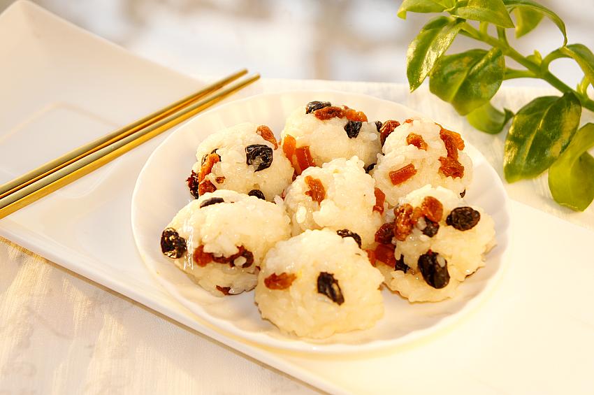 别小看这份简单的饭团子,营养价值却很高,因为饭团子里边加了几种干果,有蓝莓干、葡萄干和山楂糕。不少干果都有其促进人体健康的绝招,蓝莓干中含有大量的花青素和维生素A,对眼睛有很好的保护作用,缓解眼睛疲劳,能够有效防止黄斑变性等眼部疾病。还能减缓衰老,增强记忆力和预防心脑血管疾病。美国营养学家曾对葡萄干做过的一项研究表明,如果每天摄食相当于400卡热量的葡萄干,能有效降低血中胆固醇,同时还能抑制血中坏胆固醇的氧化。此外,葡萄干能改善直肠的健康,因为葡萄干含有纤维和酒石酸,能让排泄物快速通过直肠,减少污物在肠中停留的时间。所以老人孩子常食葡萄干有补气血、强筋骨、益气强身、耐饥寒等养生效果。而山楂糕则具有消积,化滞、行瘀的食疗价值。