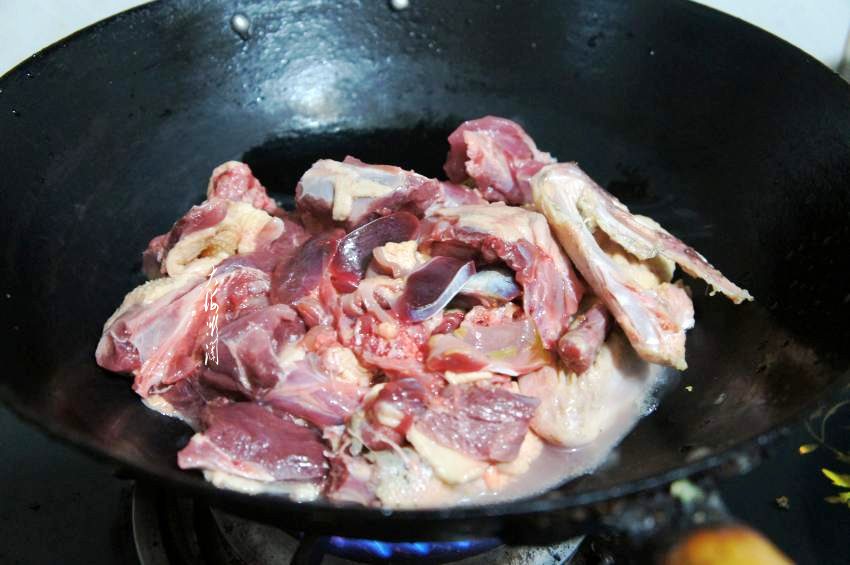 斩成小块,过冷水冲洗干净。新宰杀的鸭子,