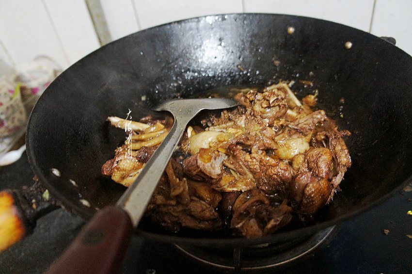 大火收汁,此时鸭子肉软烂多汁,闻着特别香。