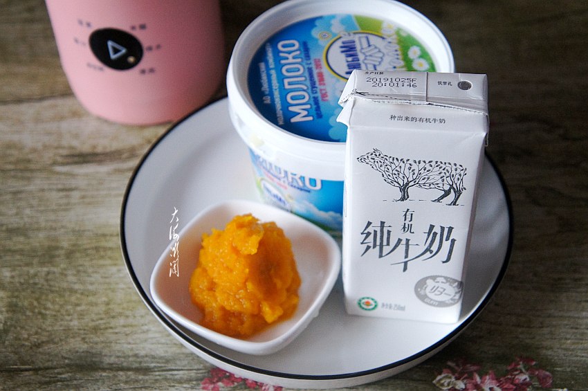 臻米mini破壁机很实用,小巧玲珑,方便快捷。做南瓜羹只需少许南瓜泥就够了,准备好牛奶和炼乳。