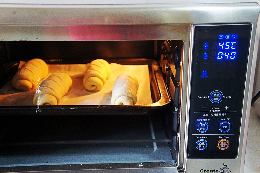入烤箱二次发酵,45度设置发酵时间40分钟,也可以发酵时间长一点。