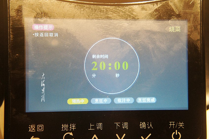炒菜机选择烧菜功能,设置时间为20分钟,启动开关,等待吃肉吧!