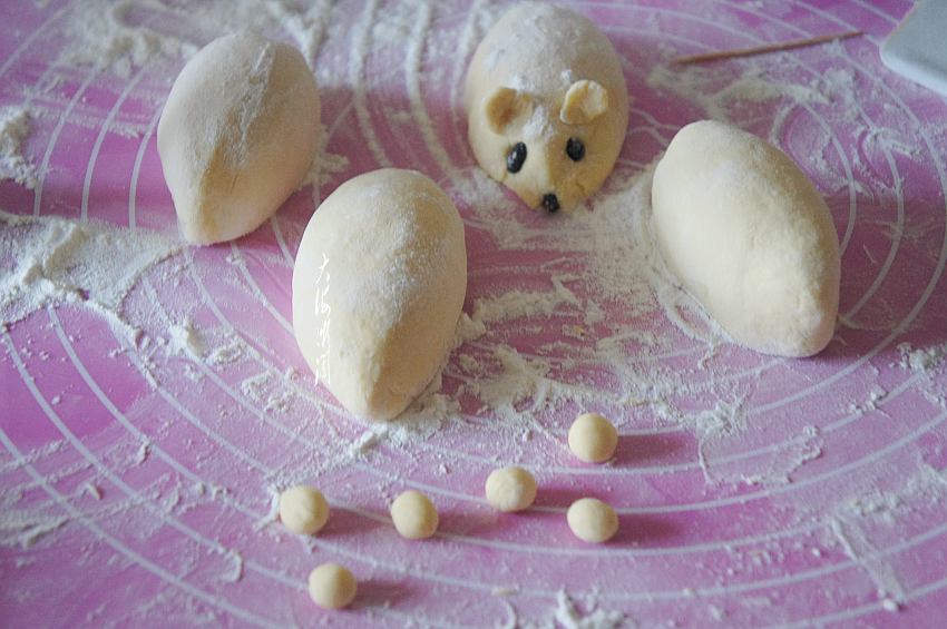 以此类推,完成4只小老鼠的制作,看着毛坯还不错,蒸出来是啥样还是不好预测的。