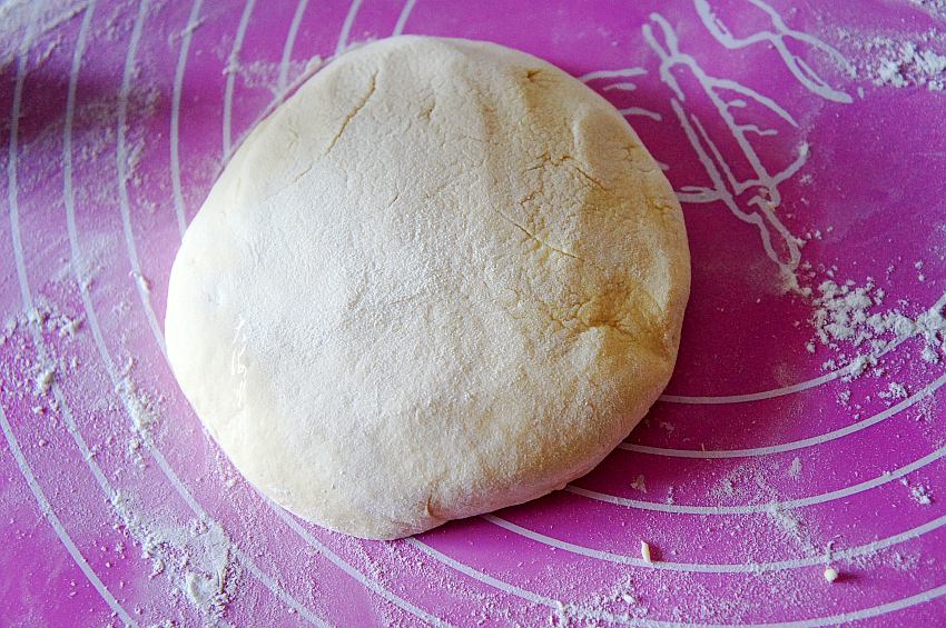 取出发酵好的而面团,揉匀排气,盖上保鲜膜饧15分钟。