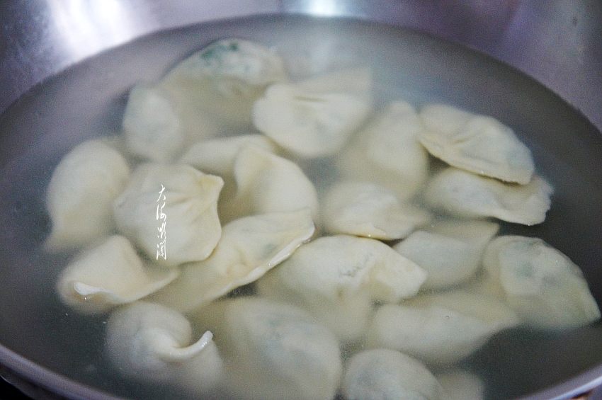 2、煮饺子,水开后饺子入锅,第一次翻开后点入冷水,第二次翻开再次点入冷水,第三次翻开即可出锅,饺子煮的恰到好处。