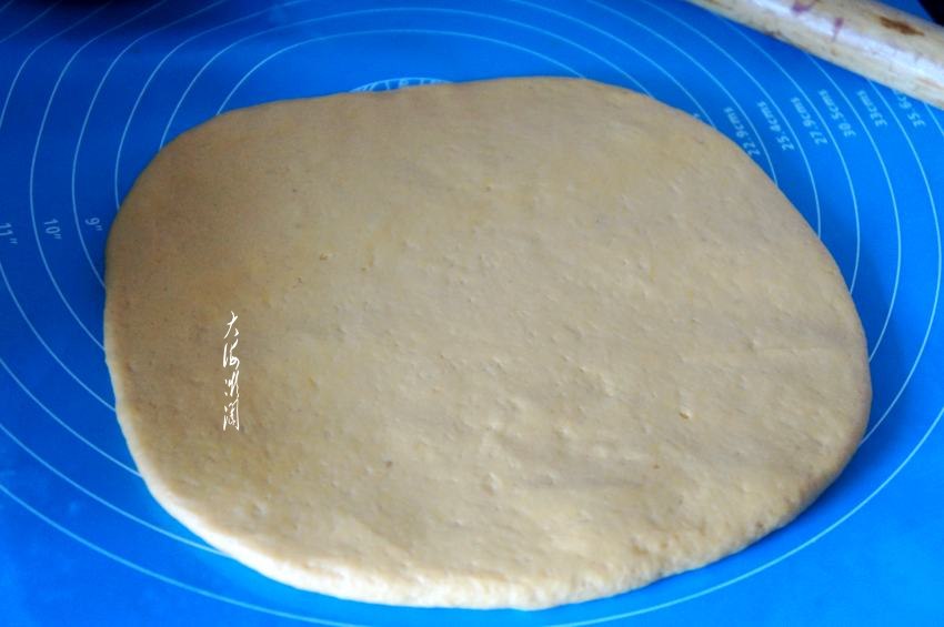 取黄色面团擀成大圆饼作画底,可以是圆的也可以是方的,随自己喜欢。