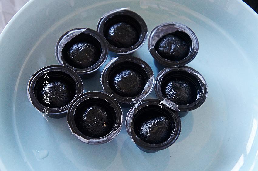 2、元宵的馅料刚好家里有现成的黑芝麻丸,如果没有可自制豆沙馅,将豆子放入压力锅煮熟,用勺子一压就碎了,加点糖加点油上锅一炒,甜甜的豆沙馅就做好了。炒的油可以是植物油或者动物油,也可以用猪板油剁碎直接和馅料揉在一起,炸出来的元宵馅就是流淌的那种。也可以少量用植物油炒,煮出来的汤圆馅不会流淌,我喜欢后者,这种吃法更健康,毕竟油少,根据自己喜欢的选择吧!