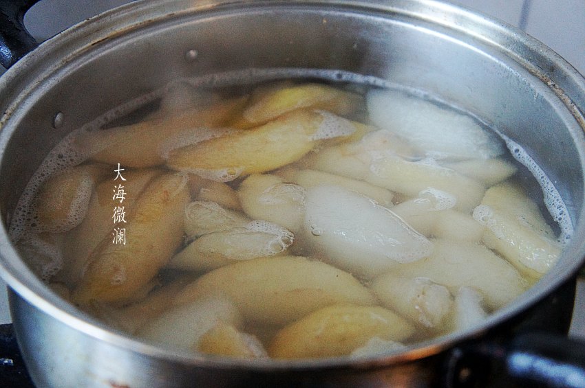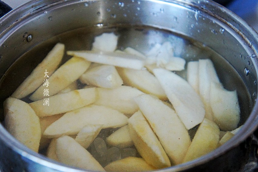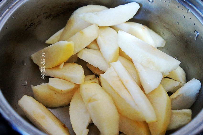 雪梨去皮洗净,切块,大小随自己喜欢。