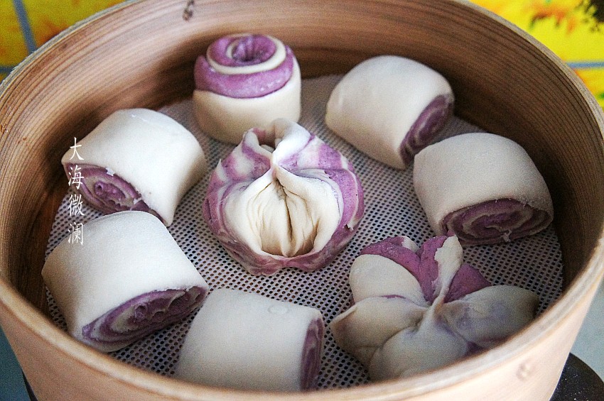 2、蒸制花卷的时间依花卷的大小而定,通常开锅10到15分钟,打开锅盖要迅速,防止锅盖上的水滴在花卷上。