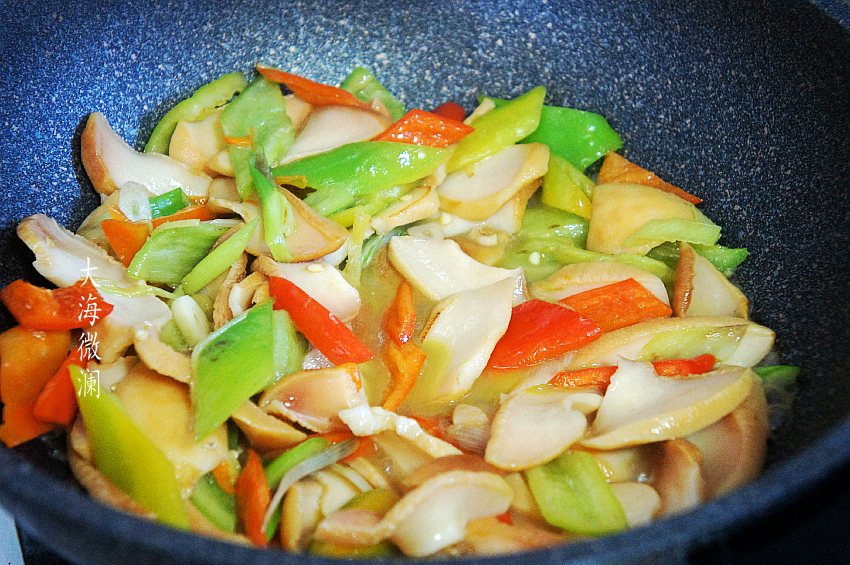 加入蚝油、蘑菇粉翻炒均匀调味,关火。(如果加香辣酱或者麻辣香锅料包,就不需要这一步了)