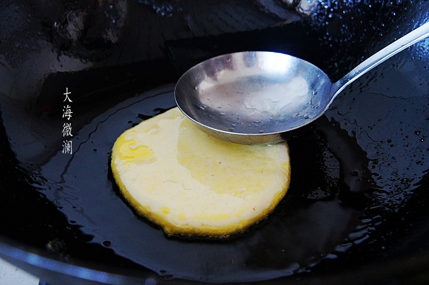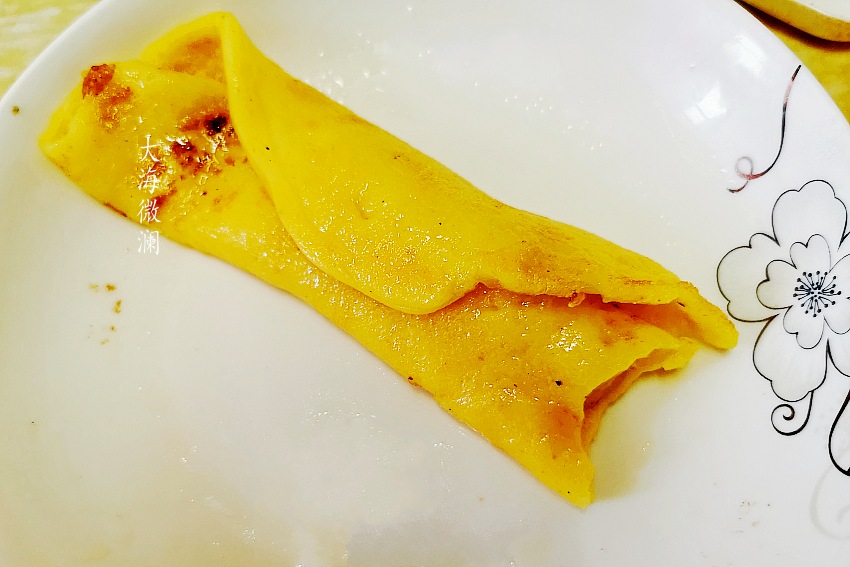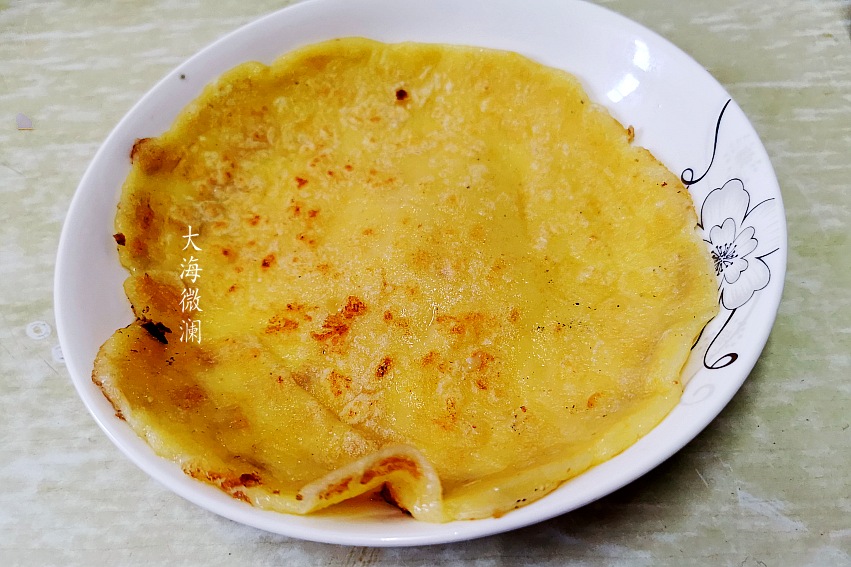 用勺子慢慢的敲打,使面团变大变薄,切记小火烙。